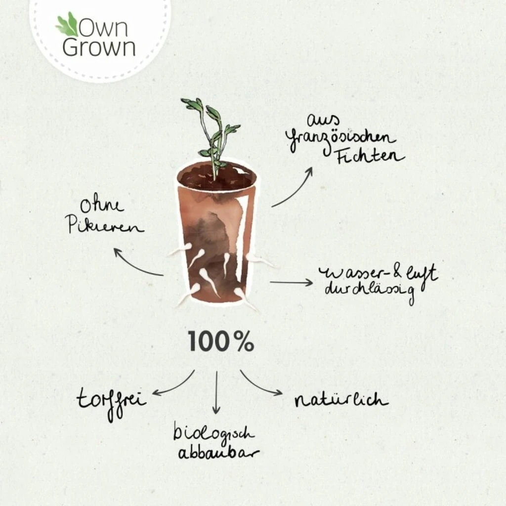 Mit den abbaubaren Pflanztöpfen wird dir dir Arbeit um einiges erleichtert. Die kleinen Gefäße können einfach durchwurzelt werden, sodass du dir das spätere Pikieren ersparst. Auch kannst du sie ganz einfach in die Erde setzen, da sie sich innerhalb weniger Wochen zur Gänze abbauen.