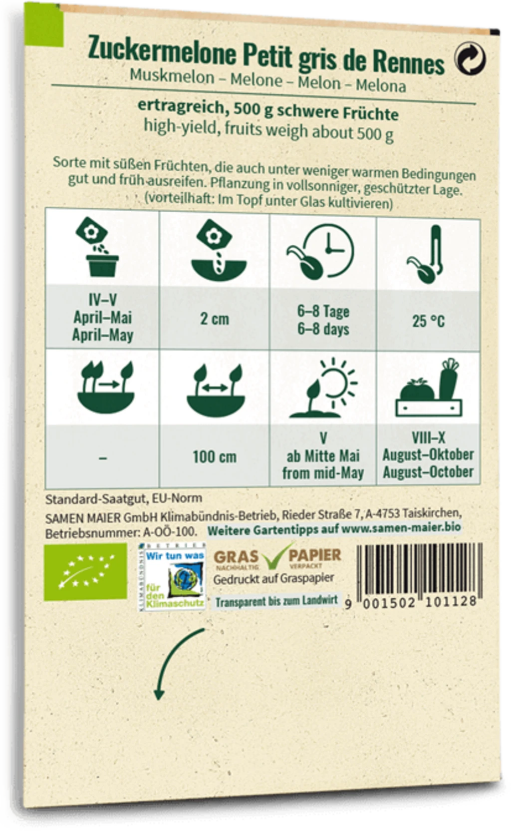 Die Pflanze gedeiht optimal wenn du eine schwarze Mulchfolie verwendest, die die Wärme im Boden zurück hält. Diese bietet der Melone auch optimalen Wind- und Wetterschutz.