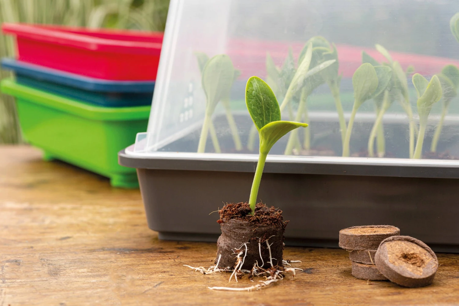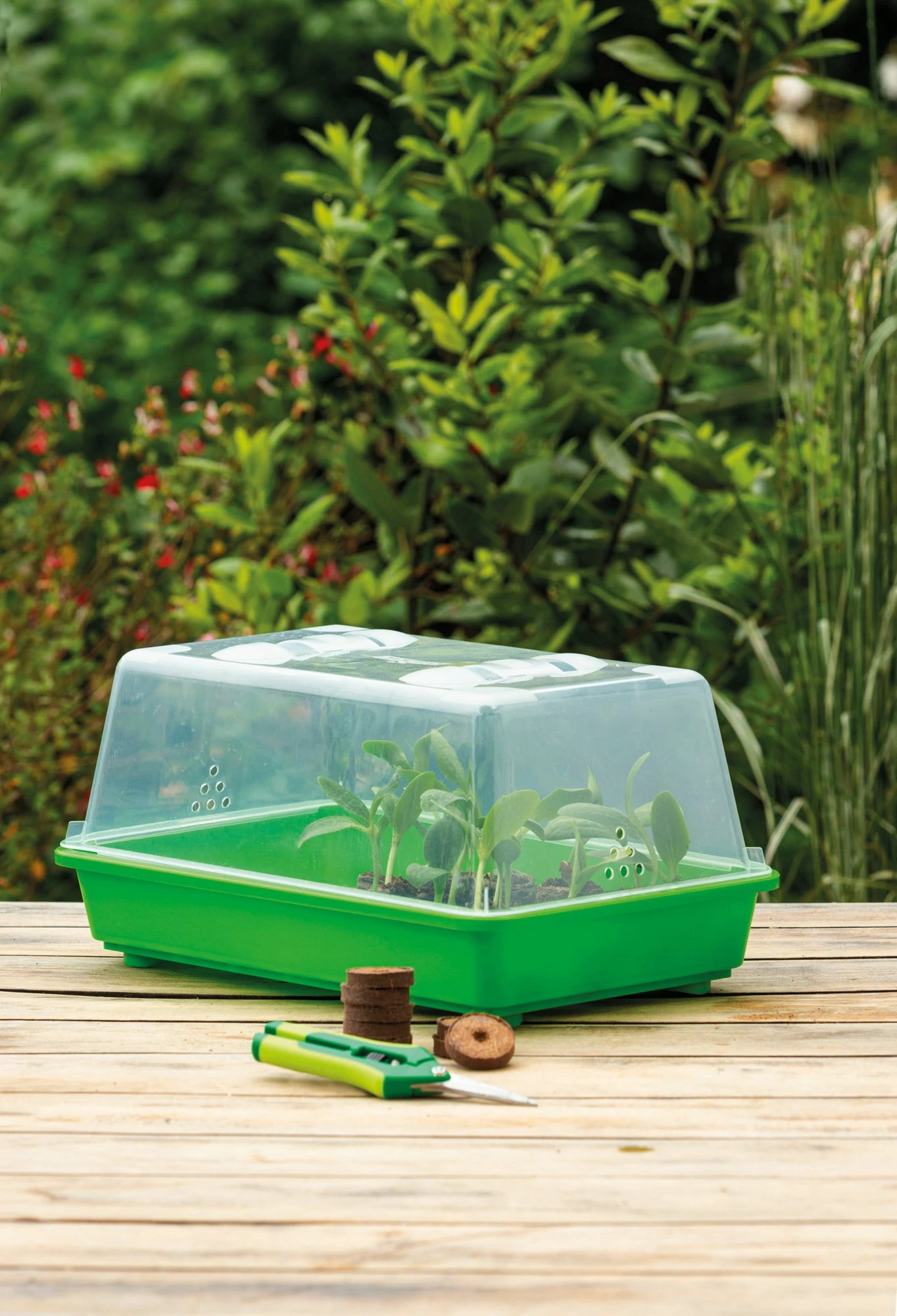 Das Zimmergewächshaus von Romberg mit glasklarer Haube bietet viel Platz für Samen oder Stecklinge. Die Belüftungsregler in der Haube sorgen für das ideale Wachstums-Klima. Die 28 Vertiefungen im Boden sind perfekt für die Kokos-Quelltabletten geeignet.