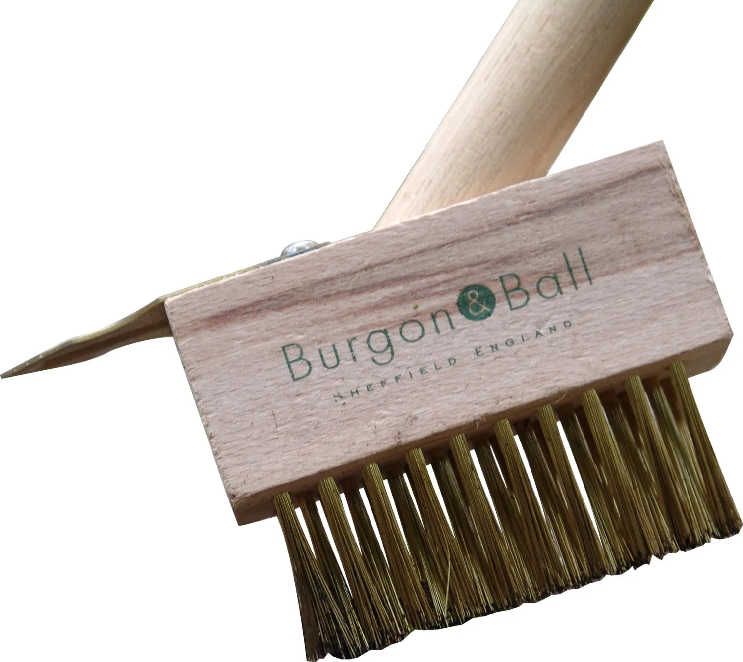 Dieser praktische Helfer erledigt gleich zwei Aufgaben auf einmal und sollte daher in keinem Garten fehlen. Der Kopf aus FSC®-zertifiziertem Hartholz ist mit drei Reihen ineinandergreifender Drahtborsten bestückt, sodass Moos und Unkraut mühelos entfernt werden können. Und solltest du es einmal mit einem besonders hartnäckigen und gut verwurzelten Unkraut zu tun haben, kannst du einfach das an der Vorderseite montierte Unkrautmesser benutzen. So haben sämtliche Unkräuter keine Chance mehr.