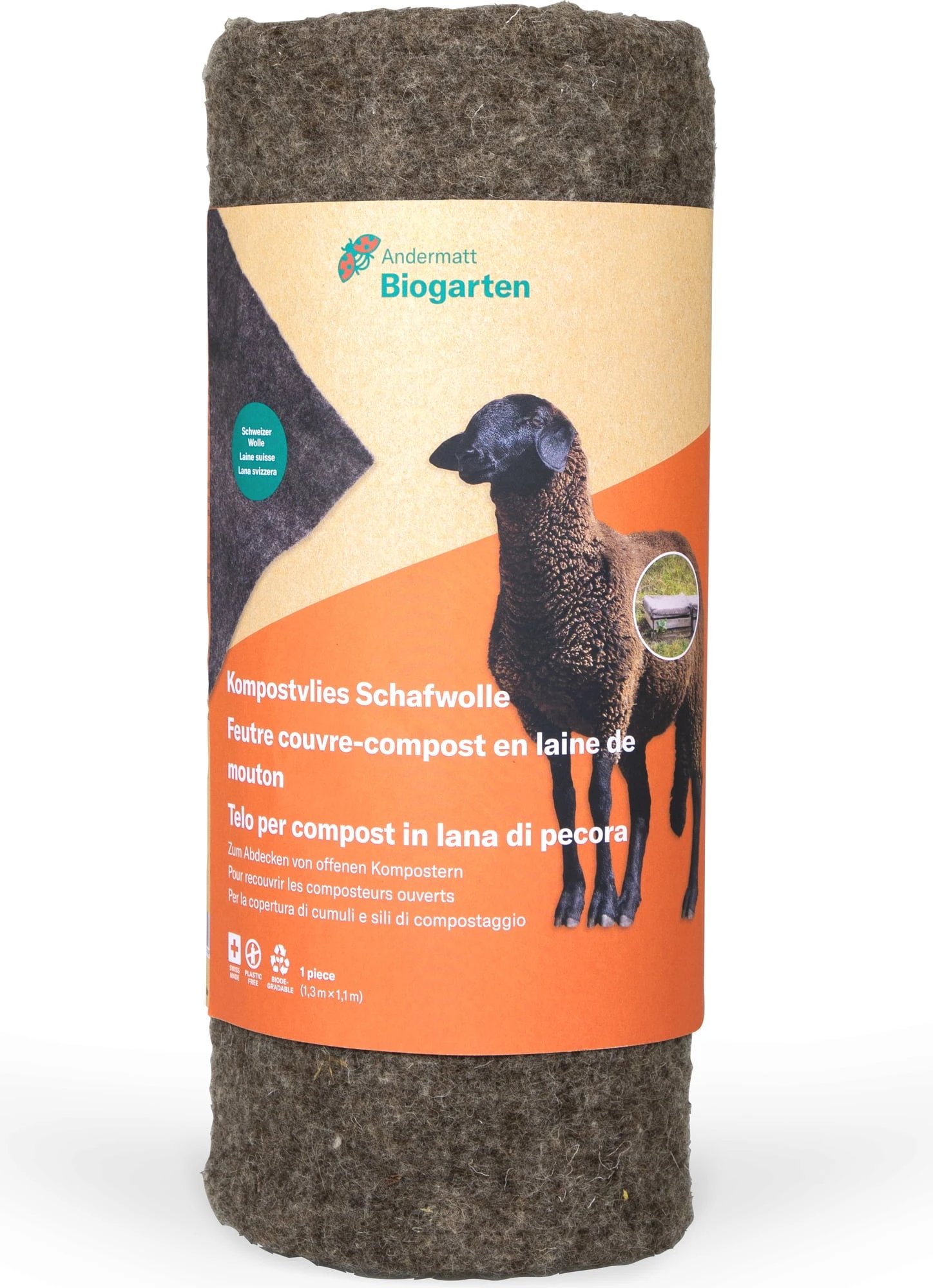 Dieses nachhaltige Kompostvlies aus 100% Schweizer Schafwolle eignet sich hervorragend zum Abdecken von Kompostmieten, Kompostkörben sowie von unbepflanzten Garten- und Hochbeeten.