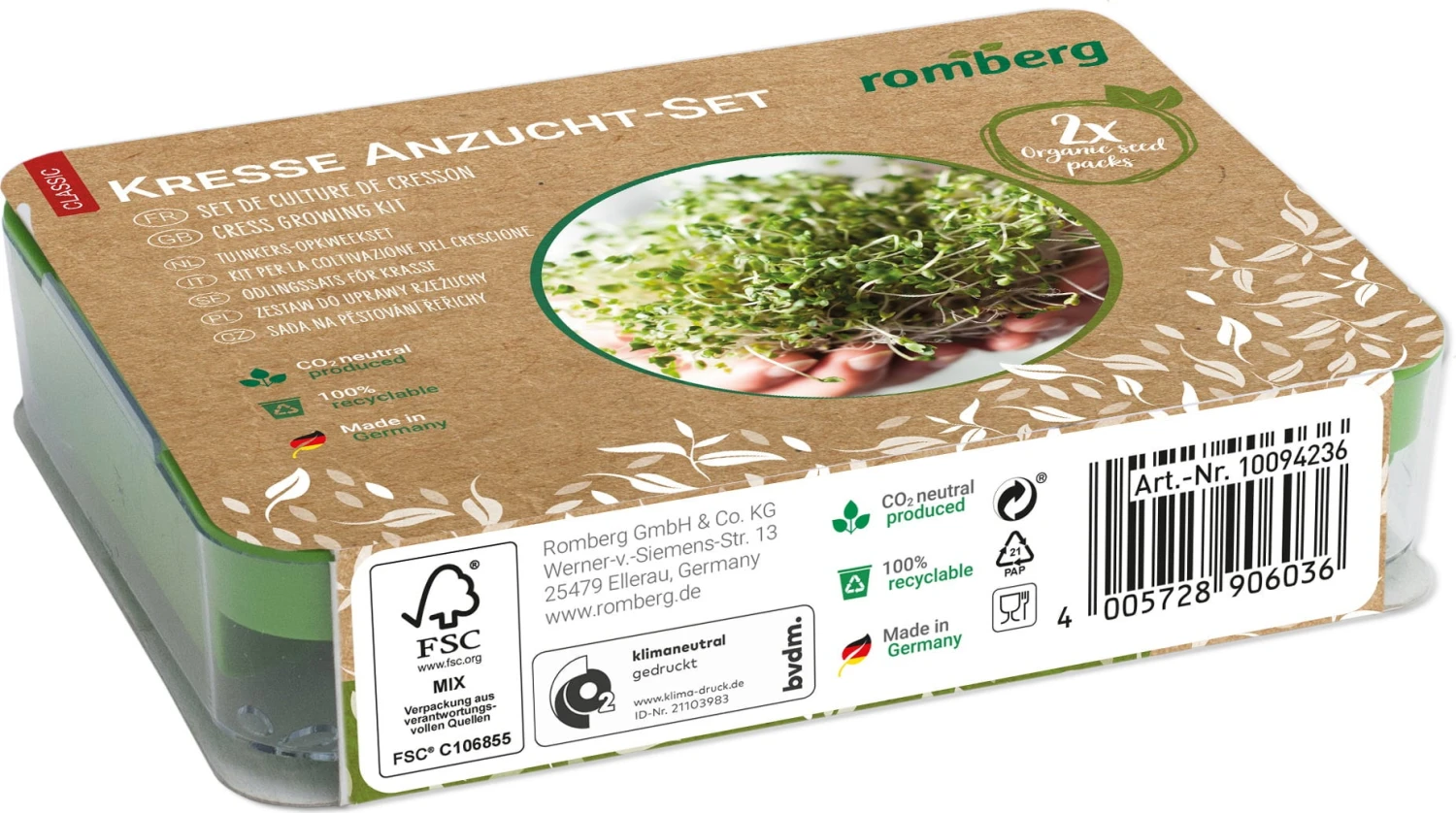 Das grün-farbige Kresse-Anzuchtset ist optimal für Genießer, die sich das ganze Jahr über frische Kresse freuen wollen und auf schnelle Anzuchterfolge setzen. Schon nach einer Woche können die ersten Sprossen geerntet werden.
