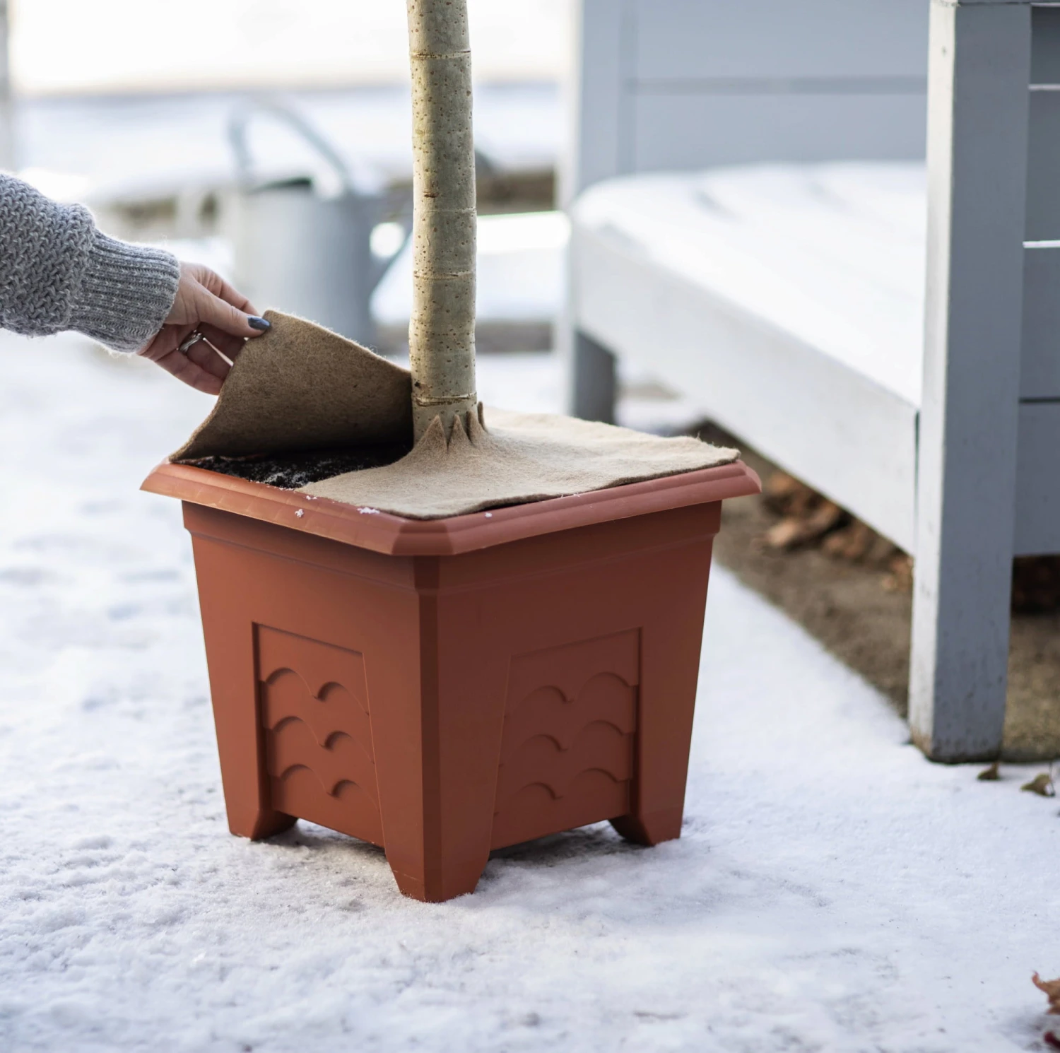 Die praktische Mulchmatte schützt die empfindlichen Wurzeln von Topfpflanzen effektiv gegen Frostschäden. Durch die bereits eingeschnittene Seite kann sie umgehend angebracht werden. In den Sommermonaten wird sie zur Unkrautbekämpfung in Beeten ausgelegt und verrottet mit der Zeit auf ganz natürliche Weise.