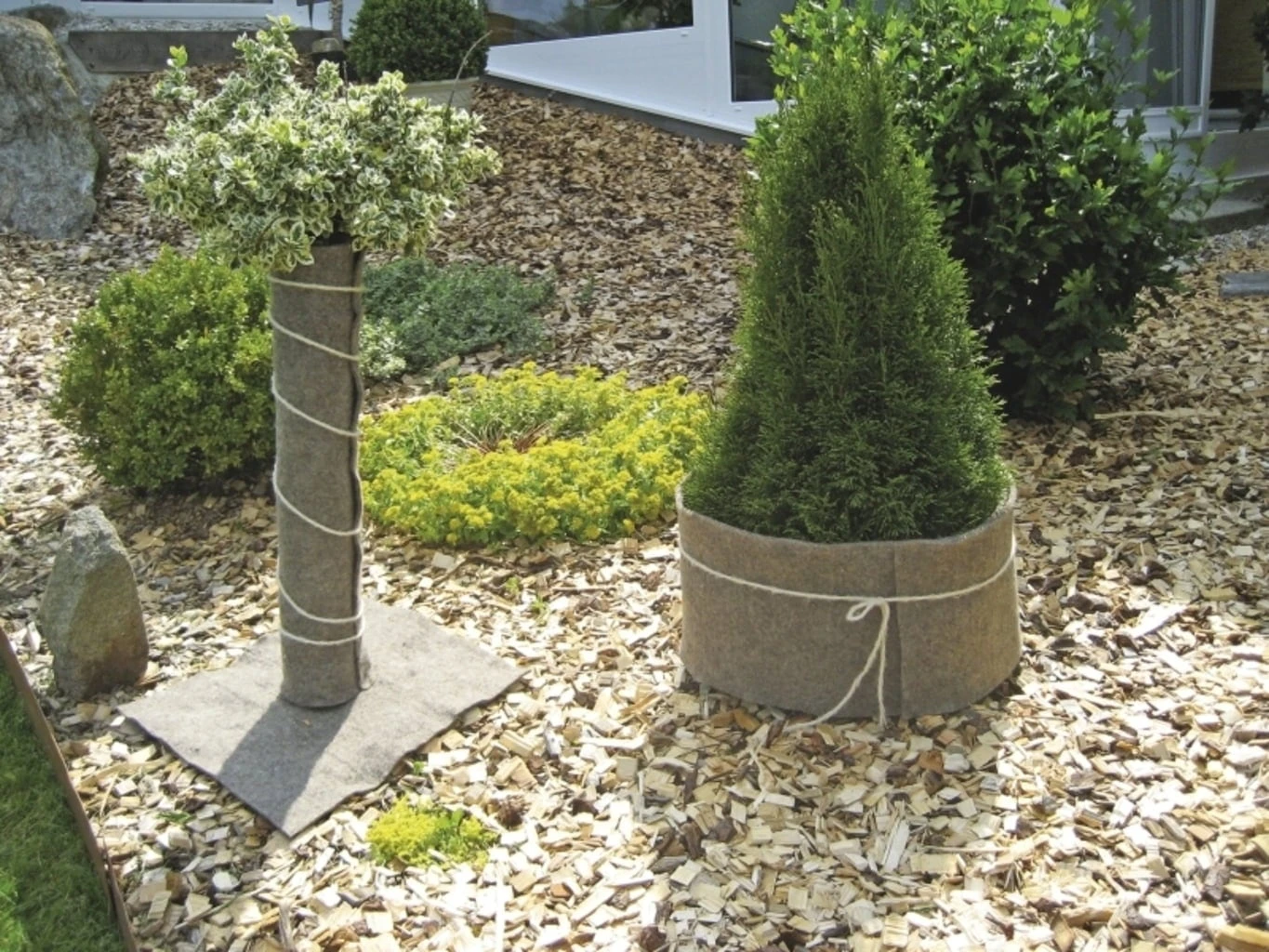 Diese hochwertige Matte aus dem nachwachsenden Rohstoff Schafwolle schützt Sträucher, Bäume sowie Topfpflanzen effektiv vor Kälte, Wind und Frost. Der fest vernadelte Schafwoll-Filz zeichnet sich durch hervorragende Atmungsaktivität sowie ausgezeichnete Wärmeisolierung aus. Auch Nässe kann den Dämmeigenschaften dieses Materials nichts anhaben – diese bleiben auch bei Regen und Schnee bestehen.